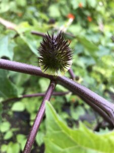 Sie kann bis zu 2m hoch werden und fällt mit ihren großen dunklen gezahnten Blättern auf.
