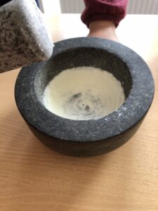 Die Gemeinschaftsarbeit war dann die Herstellung von Kyphi, ein rekonstruiertes Rezept aus dem ägyptischen Tempel Edfu, der dem Falkengott geweiht war.
